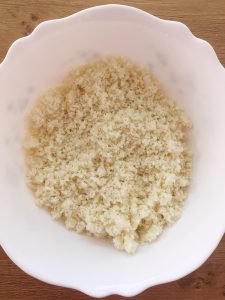 - Cuando ya tenemos rallada (o picada) toda la coliflor la pondremos en el microondas unos 8 minutos a máxima potencia. A mí particularmente me gusta más parar la cocción cada 2 minutos y remover, para que de haga de manera uniforme.